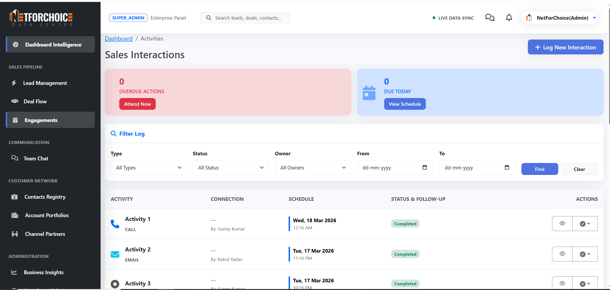 The Engagement Tracking module captures and organizes all interactions—ensuring that every communication is recorded, tracked, and actionable.