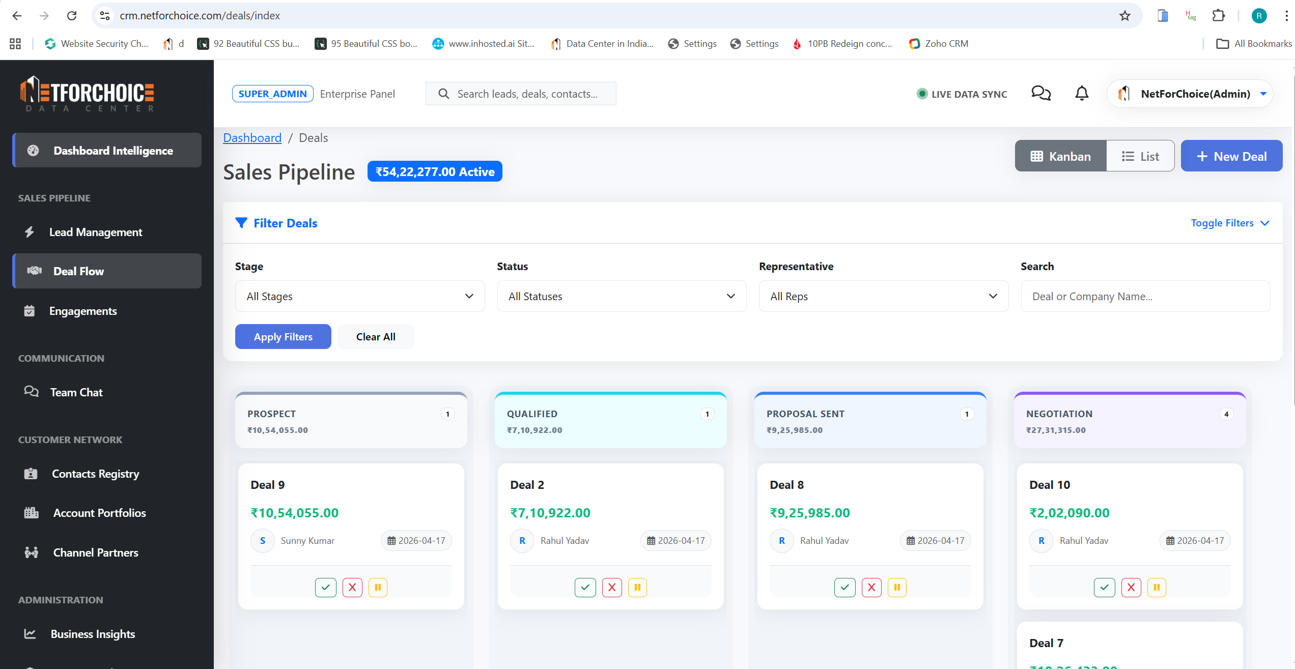 The Deal Pipeline in NFCRM provides a structured and visual representation of the entire sales journey, from initial lead conversion to final deal closure.